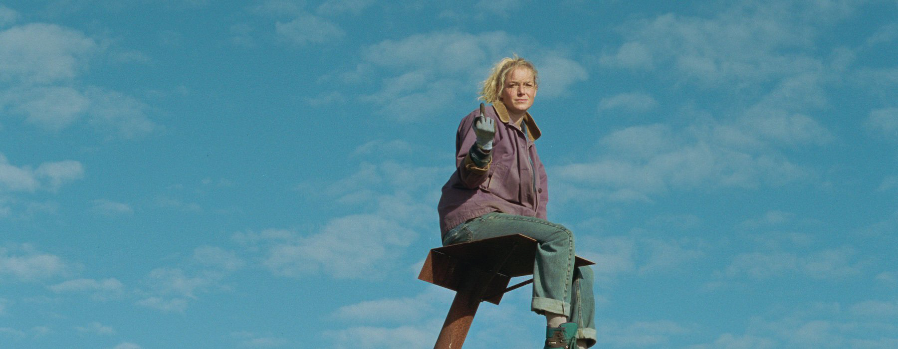 A large one-story building has its roof ripped off by a crane, preparing, we assume, for demolition. The roof, detached from the brickwork, hangs and swings several metres above its former holdings. The woman sits nearby in a car, watching, inscrutable. She lingers, and is told to move on by one of the demolition team. A relationship metaphor, that sets the scene, literally, for a clever, sometimes brilliant film that uses landscape, often beautiful, vast, changeable, subject to moods and seasons, in all its bleakness, to examine a broken marriage.